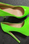 レビュー: 女性のセクシーなハイヒールグラスグリーンラウンドトゥスティレットヒールパテントPUレザーセクシーヒール