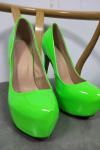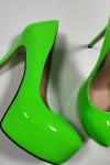 レビュー: 女性のセクシーなハイヒールグラスグリーンラウンドトゥスティレットヒールパテントPUレザーセクシーヒール