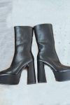 レビュー: レディース セクシー プラットフォーム チャンキーヒール ドラッグクイーン ミッドカーフブーツ ブラック
