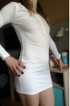 レビュー: 女性のセータードレスホワイトVネックカジュアルボディコンドレス長袖ニットペンシルドレス