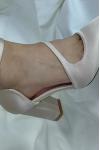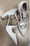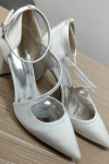 レビュー: 女性の結婚式の靴ラインストーンサテン先のとがったつま先チャンキーヒールブライダルシューズ