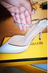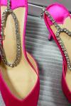 レビュー: サテンの女性のアンクル ストラップ スリングバック ヒール ブライダル パンプス