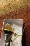 レビュー: レディース アンクル ストラップ スティレットヒール サンダル ゴールド プロムシューズ ロック付き