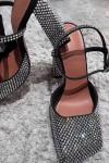 レビュー: レディース ブロックヒール スクエアトゥ ラインストーン スリングバック パーティーシューズ