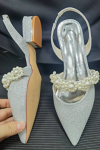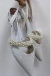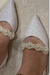 レビュー: 女性のブライダルシューズ真珠スパンコール布先のとがったつま先フラットブライダルシューズ