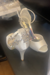 レビュー: 女性用ブライダルシューズ サテン ディープブルー ピープトウ ラインストーン チャンキーヒール ブライダルシューズ