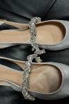 レビュー: 女性のブライダル シューズ スパンコール布シルバー ポインテッド トゥ チェーン フラット ブライダル シューズ