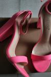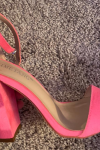I love the hot pink color and block heel. They do need to be broken in before being considered comfortable but just the ankle wrap part. I ordered my normal size and it fit TTS.