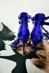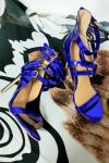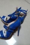 レビュー: 女性サンダルスチレットヒールシックアンクルストラッププラスサイズオフィス/パーティー用ディープブルーシューズ