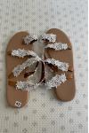 レビュー: ウェディングフラットサンダルホワイトPUレザーフラワー装飾オープントゥフラットブライダルシューズ