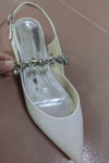 レビュー: 女性の結婚式の靴ラインストーンスパンコール布先のとがったつま先フラットブライダルシューズ