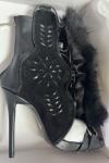 レビュー: レディース グラディエーターサンダル オープントゥ バックルディテール フェイクファーディテール レースアップサンダル