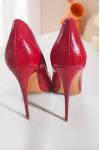 レビュー: レディース ハイヒール レッド ポインテッドトゥ ストーン柄 スリッポン パンプス
