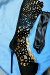 レビュー: サンダル ブーツ オープントゥ カットアウトシューズ ハイヒール PUレザー セクシーシューズ