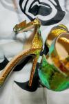 レビュー: 女性のホログラフィックアンクルストラップヒールスチレットヒールサンダル