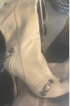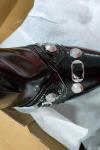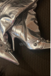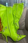 レビュー: 女性のニーハイブーツクラシックポインテッドトゥスティレットスキニーヒールスタッドバックルヴィンテージブーツ