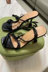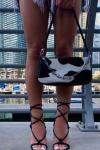 レビュー: レディースブラックレースアップサンダルオープントゥハイヒールストラップサンダル
