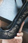 レビュー: レディース レース ブライダル パンプス スティレットヒール ポインテッドトゥ ブラックヒール