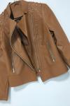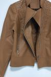 レビュー: 女性のモト ジャケット PU レザー スプリング ショート アウターウェア ワインレッド