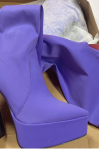 レビュー: レディースオーバーニーブーツプラットフォーム弾性ポインテッドトゥチャンキーヒールサイハイブーツ