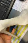 レビュー: サテンウェディングシューズパープルピープトウシューズゲストシューズ女性ハイヒール