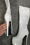 レビュー: 女性のプラットフォーム スティレット ヒール ニーハイ ブーツ パテント レザー