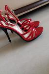 レビュー: レディースヒールサンダルレッドスティレットヒールオープントゥPUレザー