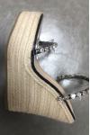 レビュー: 女性用ラインストーンスリッポンオープントゥPUレザーウェッジサンダル