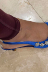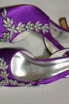 レビュー: 母親ブライダルシューズ 2025 パープル ピートゥ ラインストーン スリングバック ウェディングシューズ キトゥンヒールューズ