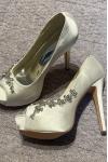 レビュー: ブライダルシューズ ウェディングシューズ プラットフォーム サテンラインストーン ピープトウ スティレットヒール
