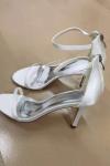 レビュー: ウェディングシューズチュールレッドサテンバックルオープントゥスティレットヒールブライダルシューズ