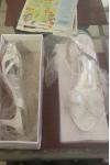 レビュー: 女性の結婚式の靴ラインストーンサテンオープントゥチャンキーヒールブライダルシューズ