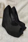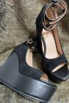 レビュー: ブラックウエッジシューズ 2025 スウェード ピートゥ アンクルストラップパンプス 女性セクシーなシューズ