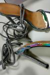 レビュー: 女性のキラキラ ストラップ ヒール サンダル シルバー レースアップ プロム シューズ