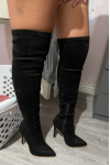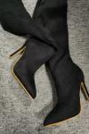 レビュー: ブラック スエードの女性用スティレット ヒール サイハイ ブーツ