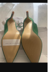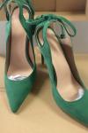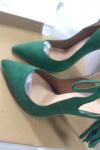レビュー: 女性のハイヒールスチレットヒールパンプスマイクロスエードアッパーディープグリーンスリングバックヒール