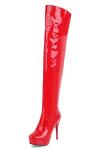 レビュー: レディースサイハイブーツパテントレザーポインテッドトゥブライトレザースティレットヒールブーツ