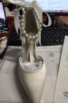 レビュー: ウェディングシューズサテンホワイトポインテッドトゥ真珠戻るボウスティレットヒール足首パーティーシューズ