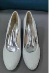 レビュー: 女性の結婚式の靴刺繍レースラウンドトゥチャンキーヒールブライダルシューズ