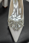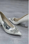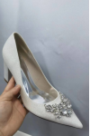 レビュー: 女性の結婚式の靴ラインストーン先のとがったつま先チャンキーヒールブライダルシューズ