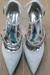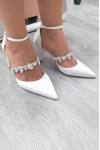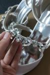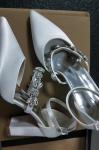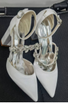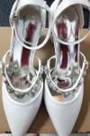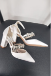 レビュー: 女性の結婚式の靴ラインストーンサテン先のとがったつま先チャンキーヒールブライダルシューズ