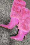 レビュー: レディース ホワイトブーツ ふわふわフェイクファー スティレットヒール ニーハイブーツ
