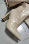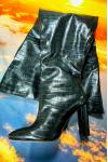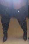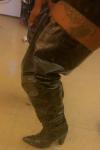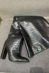 レビュー: レディース ワイド ストーングレイン チャンキーヒール オーバーサイズ サイハイブーツ